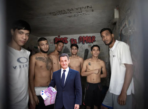 En tant qu’ancien président, Sarkozy sait bien qu’en prison il faut mettre de l’huile dans les rouages, il a donc prévu large en piochant dans les billets aimablement remis par Khadafi et le petit photomontage a été diffusé par le directeur de la Maison d’Arrêt pour motiver ses co-détenus. Je pense qu’avec ça l’huile ne sera pas seulement dans les rouages mais également dans le postérieur de l’ancien président pour faciliter les compréhensions mutuelles.